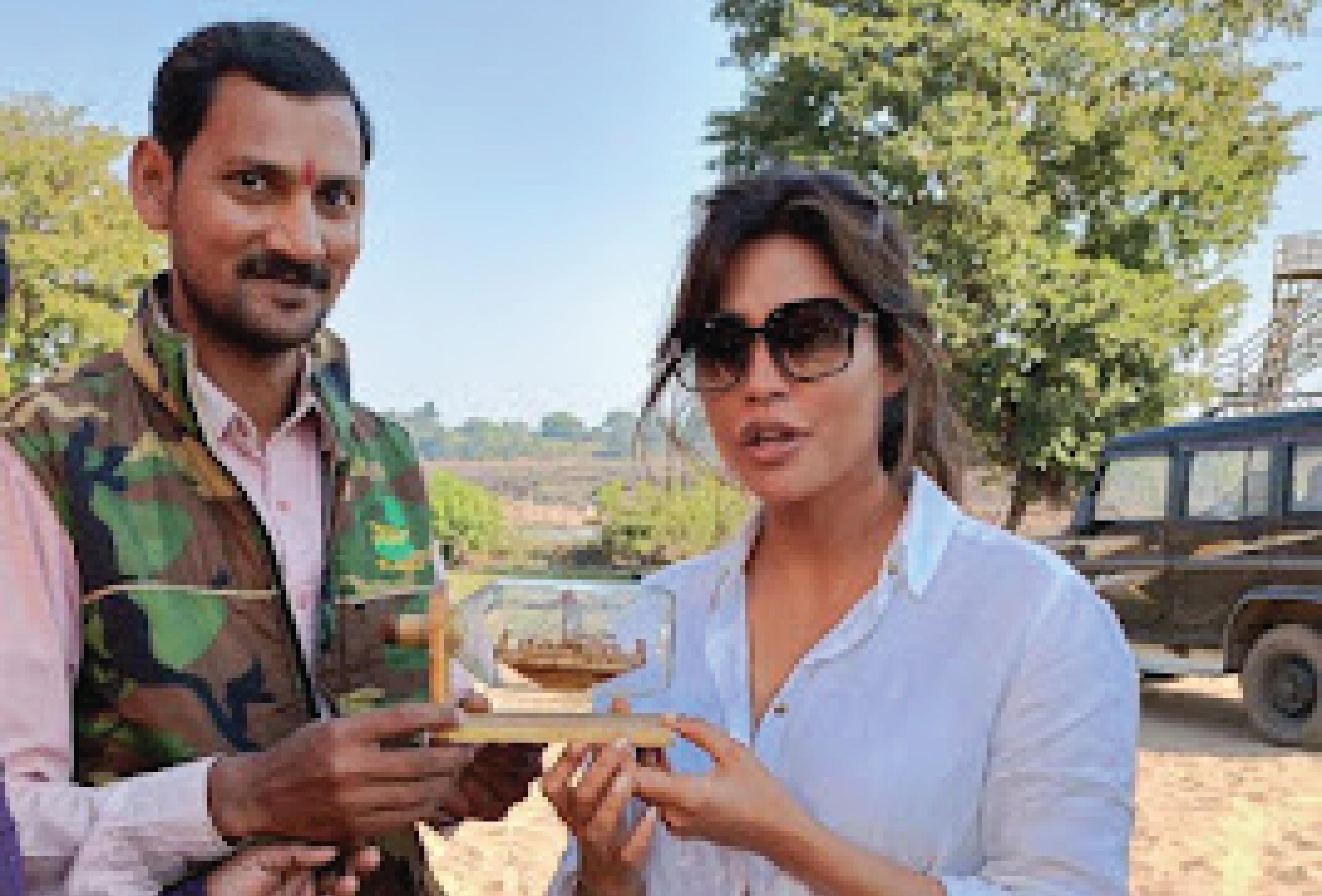 फिल्म अभिनेत्री चित्रांगदा सिंह को त्रिलोक सिंधिया ने कांच की बोतल के अंदर बना जहाज किया भेंट