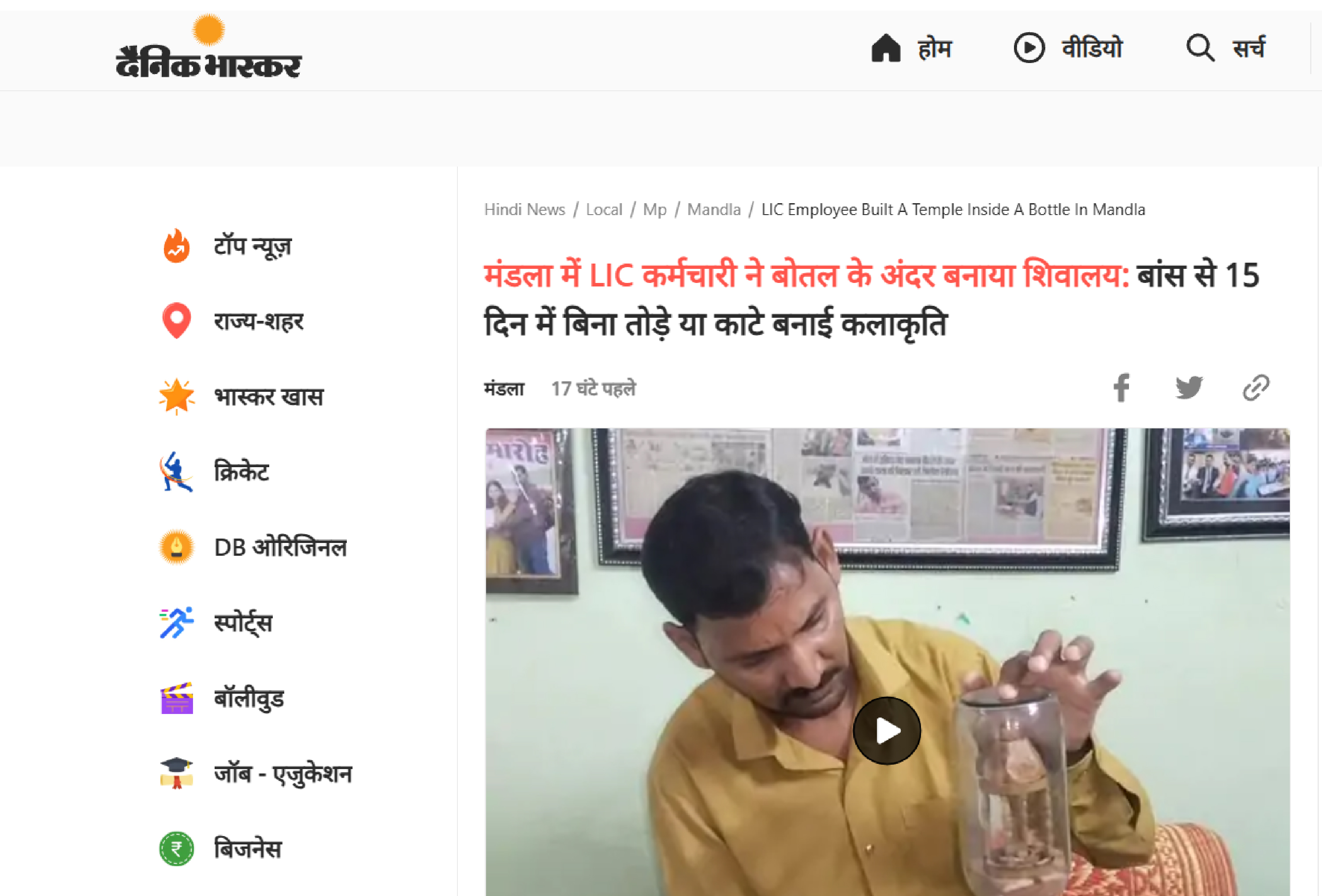 कांच के बॉटल में बना डाला महाकाल मंदिर, मिलिए मंडला के श्रवण कुमार से | Mandala News