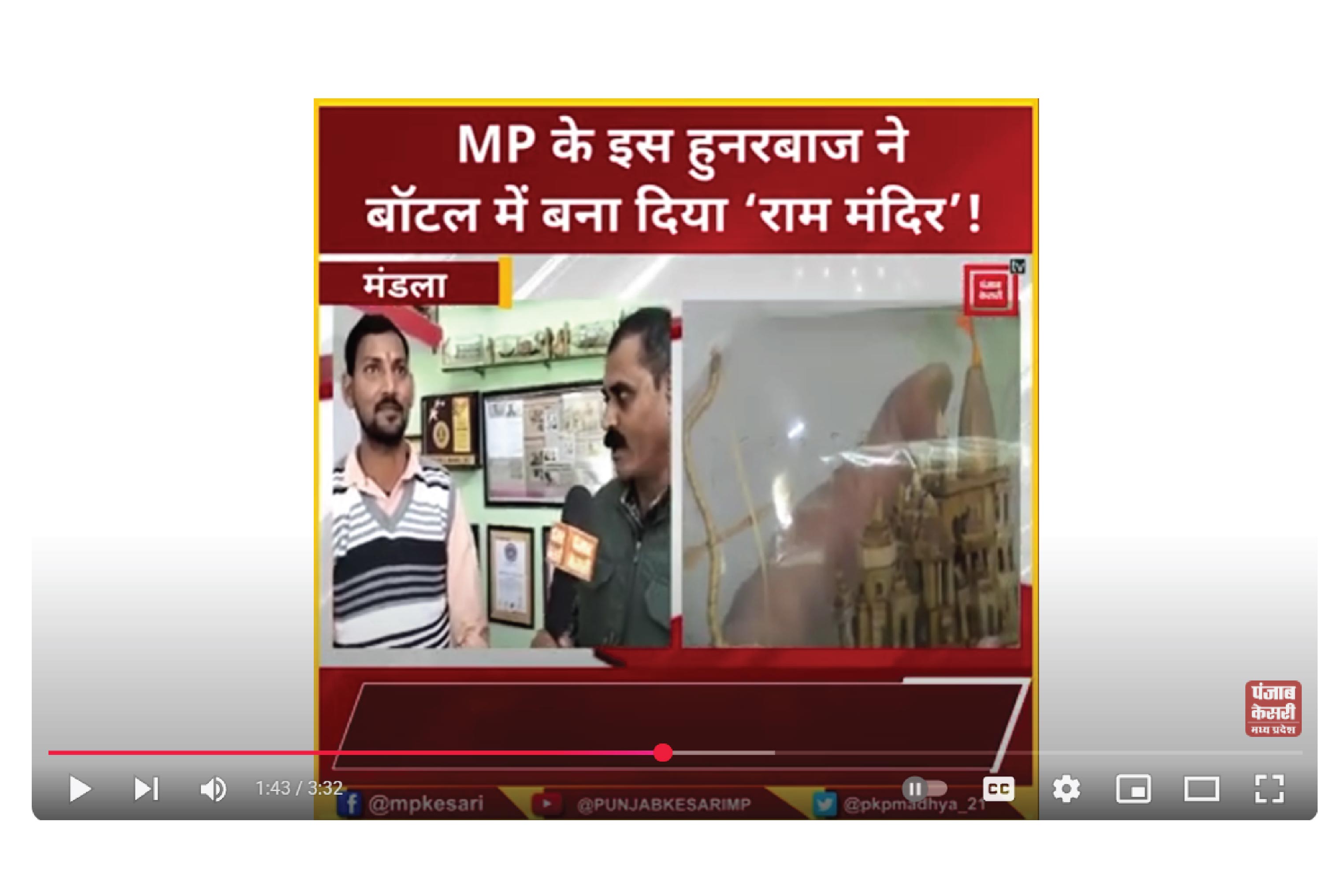 मंडला: त्रिलोक सिंधिया की गजब की कारीगरी...बॉटल के अंदर बना दिया भव्य राम मंदिर...