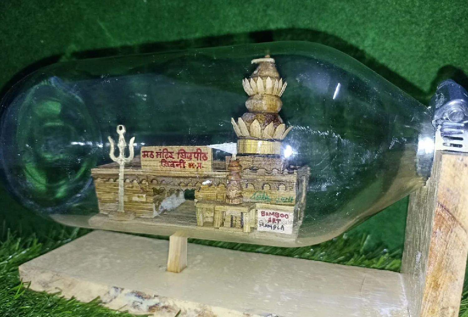 मंडला में LIC कर्मचारी ने बोतल के अंदर बनाया शिवालय:बांस से 15 दिन में बिना तोड़े या काटे बनाई कलाकृति