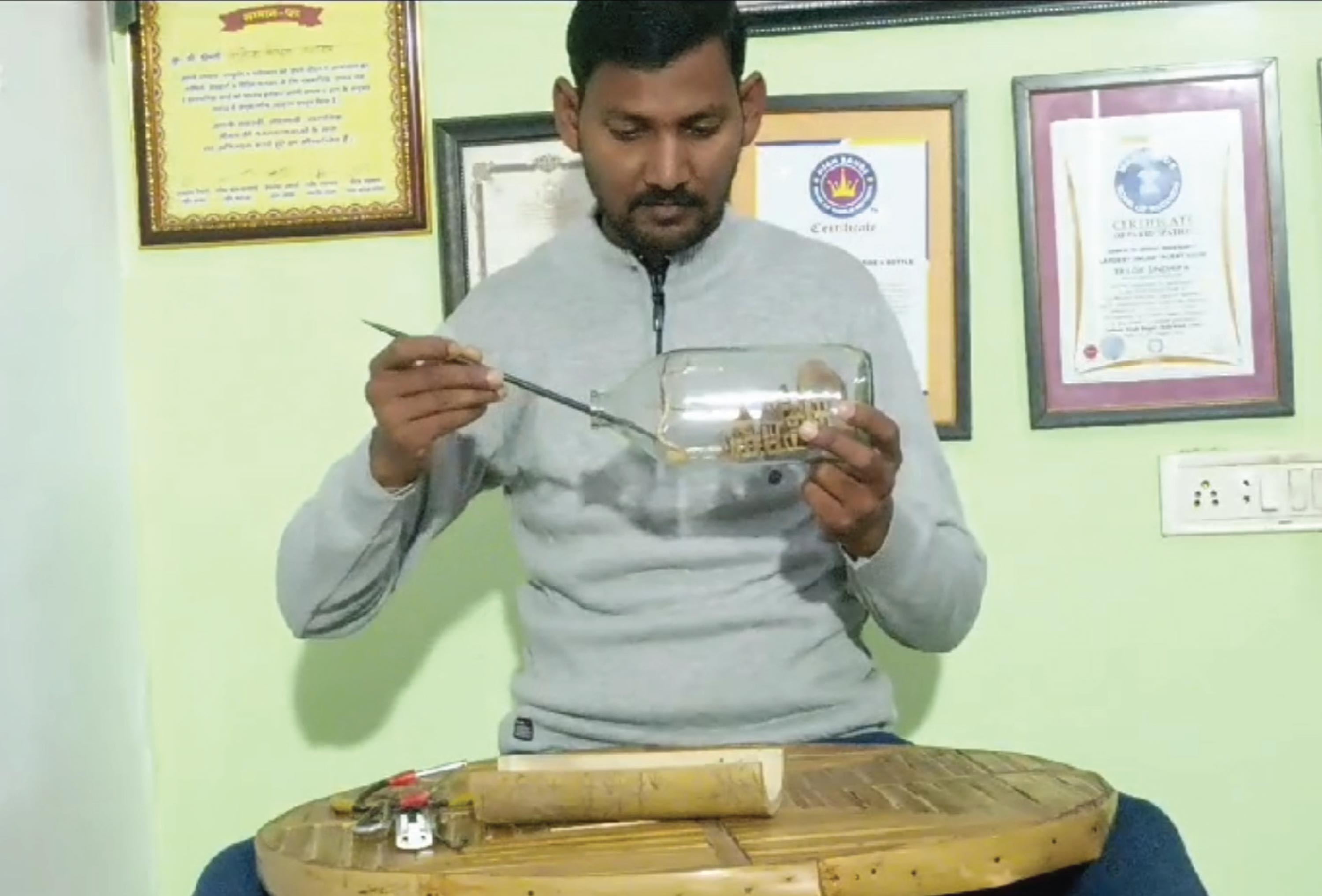 त्रिलोक सिंधिया ने फिर रचाया इतिहास: चिमटी की मदद से कांच की बोतल में बनाया लाल किला