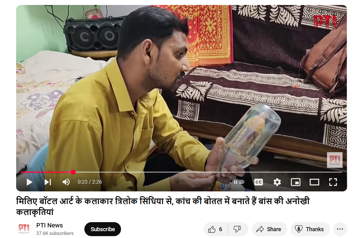 मिलिए बॉटल आर्ट के कलाकार त्रिलोक सिंधिया से, कांच की बोतल में बनाते हैं बांस की अनोखी कलाकृतियां