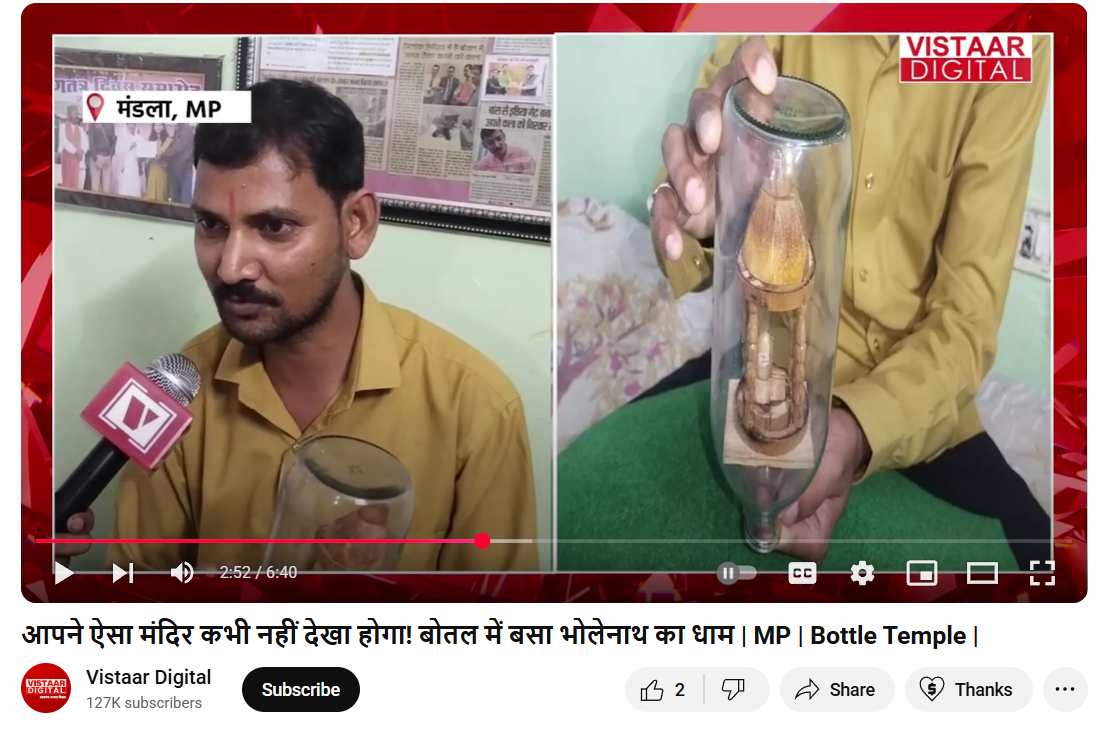 कांच के बॉटल में बना डाला Mahakal Mandir, मिलिए मंडला के कलाकार त्रिलोक सिंधिया